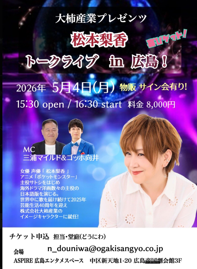 【松本梨香】【 出演情報 】 横浜 アニメジャパン2026 「 最強声優大集合! presented by ドコモ MAX 」