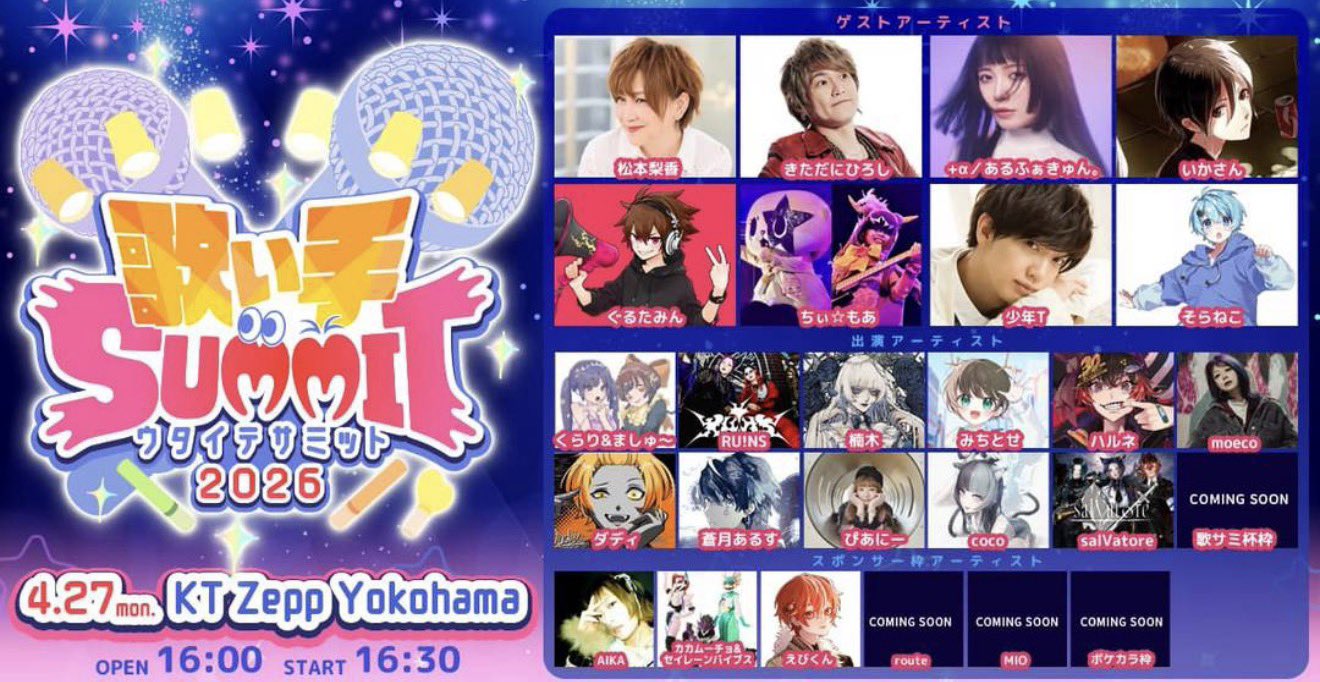 【松本梨香 出演情報】歌い手SUMMIT 2026 🗓️ 2026年 4月27日(月)